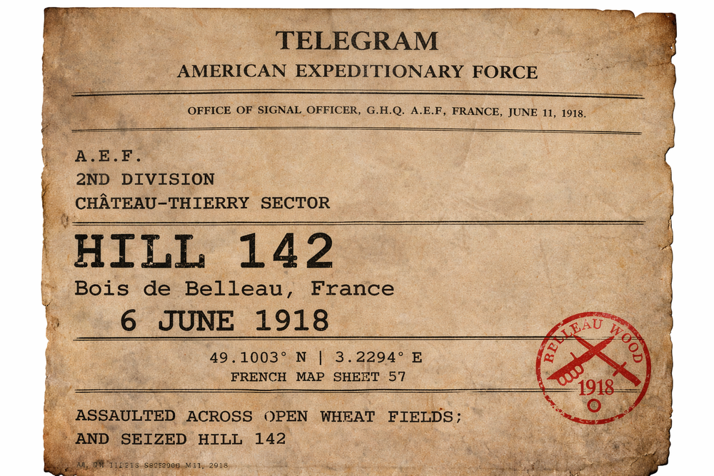 Before the name Belleau Wood became legend, the fight began on a rise of ground known only as Hill 142.From this height, German machine guns dominated the surrounding wheat fields and roads. As long as the hill remained in enemy hands, the advance toward the wood could not begin.The mission fell to the U.S. Marines of the 5th Regiment.At dawn they stepped off into the open.No cover.No concealment.Only waist-high wheat and a hillside alive with machine-gun fire.Men fell in rows as the Marines pushed forward through the field.Officers were hit.Units became tangled and scattered under the storm of bullets.Still they climbed.Across the slope and into the German trenches the fight became close and violent—rifles, bayonets, grenades, and bare hands in the churned earth.By afternoon the hill had been taken.Hill 142 was small ground on the map of France.But its capture opened the road to Belleau Wood, where the Marines would soon fight one of the most savage battles in their history.The first step toward that legend was taken here.On a hill that had to be seized.And was.